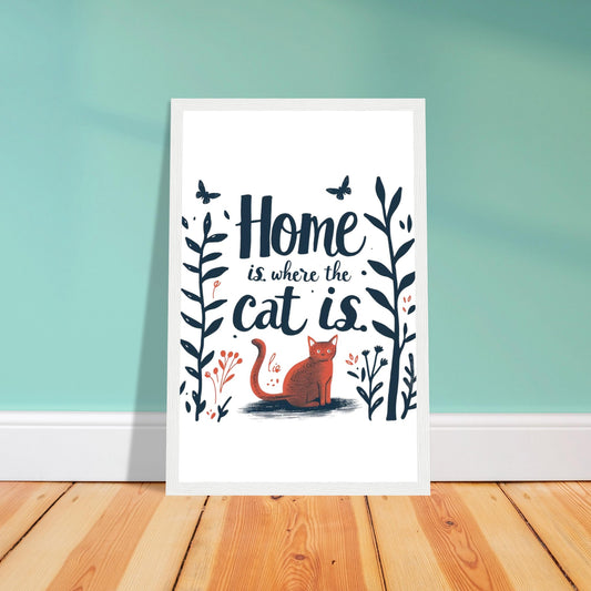 Premium Matte Paper Wooden Framed Poster 'Home is where the cat is'